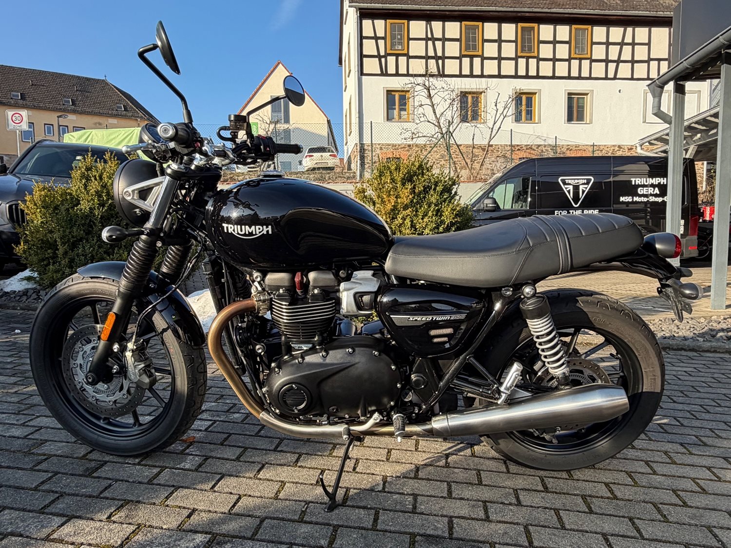 TRIUMPH SPEED TWIN 900 - Gebrauchtfahrzeug! Die Speed Twin 900 verbindet klassisches Styling mit moderner Technologie. Damit ist sie perfekt geeignet für unvergessliche Wochenendausflüge oder maximalen Fahrspaß im Stadtverkehr. Agiles Handling, packende Leistung und souveränes Fahrverhalten machen jede Fahrt zu einem packenden Erlebnis. Dank einer niedrigen, natürlichen und aufrechten Sitzposition ist sie äußerst komfortabel und einfach zu fahren.