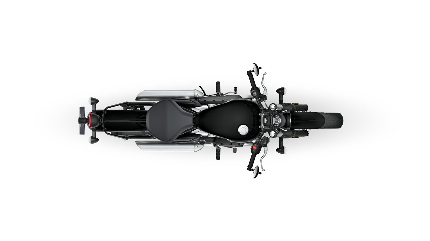 Der flüssigkeitsgekühlte 1.200 cm Bonneville High-Torque-Twin bietet echten Hot-Rod-Punch: 78 PS Spitzenleistung und ein jederzeit abrufbares Drehmoment von satten 106 Nm, das schon im unteren Drehzahlbereich für enormen Schub sorgt. Der 270° Hubzapfenversatz sorgt für den unverwechselbaren Pulsschlag und eine spontane, charaktervolle Beschleunigung. Der Slash-Cut-Doppelschalldämpfer aus gebürstetem Edelstahl entfaltet im Leerlauf ein tiefes, sattes Grollen und lässt beim Gaswegnehmen den markante Sound erklingen den authentischen Bobber-Soundtrack. EURO 5+-Effizienz, ausgezeichneter Kraftstoffverbrauch und lange Wartungsintervalle von 16.000 km sorgen für unkomplizierten, alltäglichen Fahrspaß.